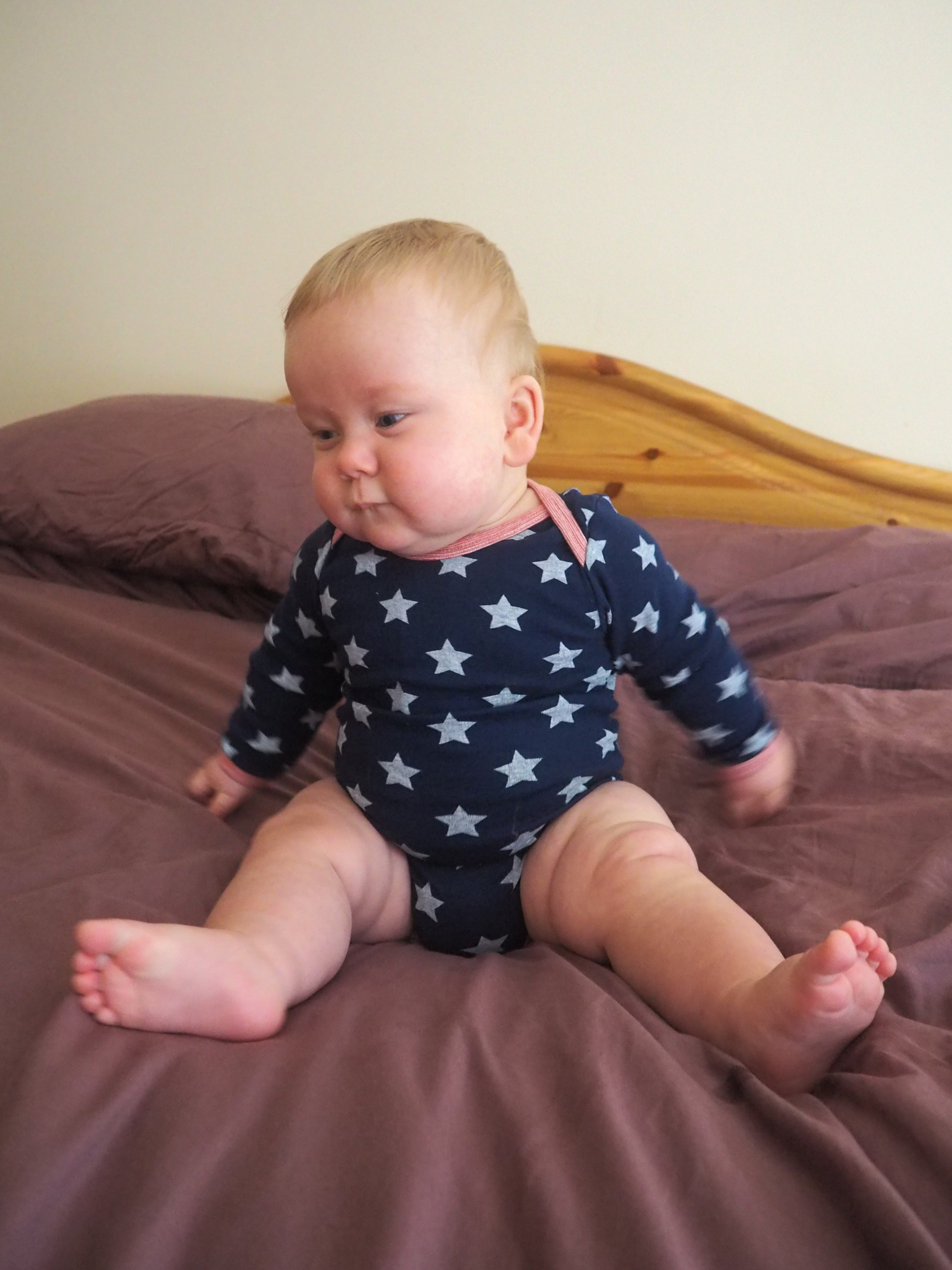 I said it before and will repeat myself here! This type of item is a must-have for your bébé! You can’t resist such patterns! I mean, look at Baba’s smile when he was wearing this star print bodysuit! Il est très cool and he knows it…