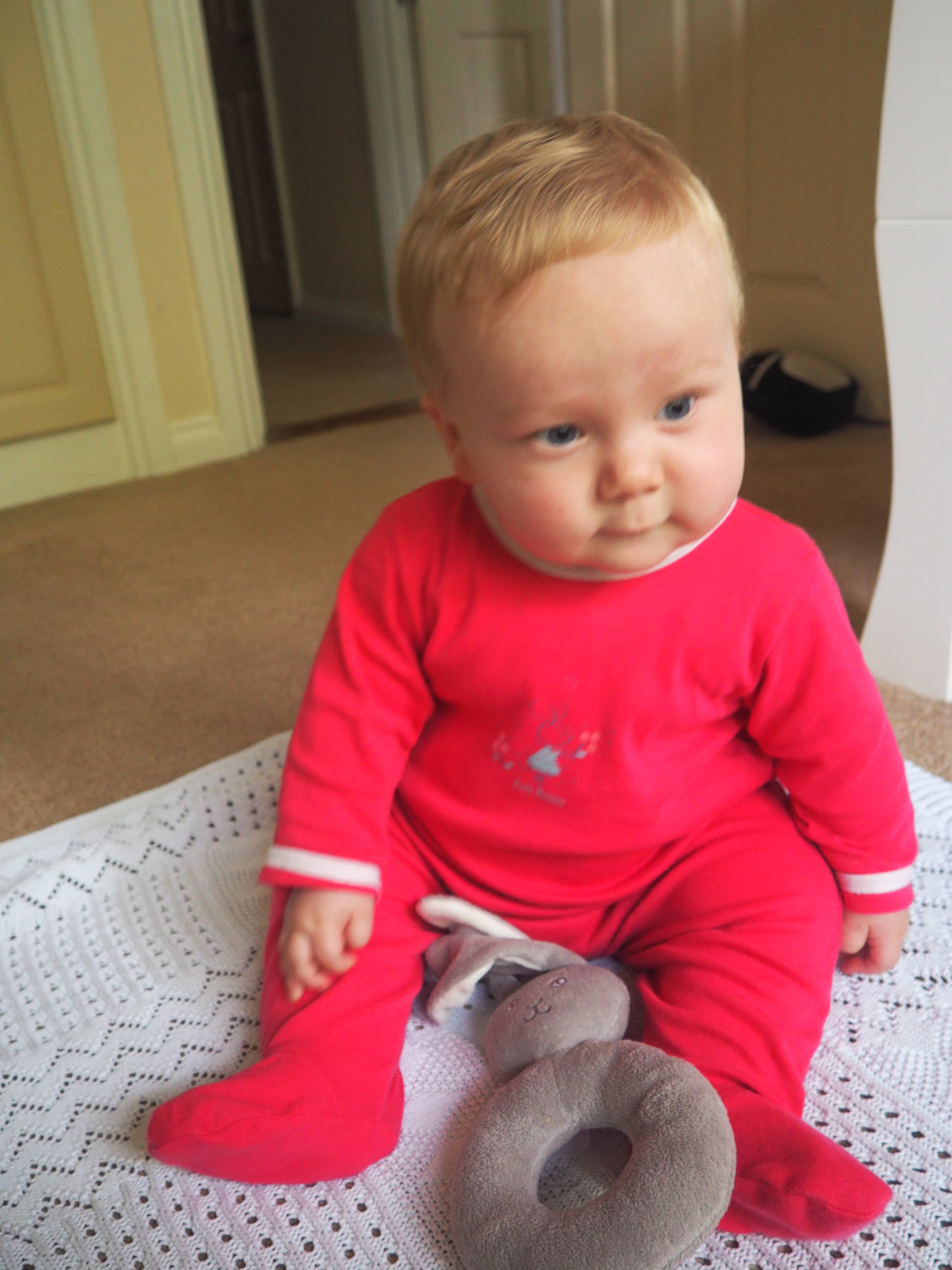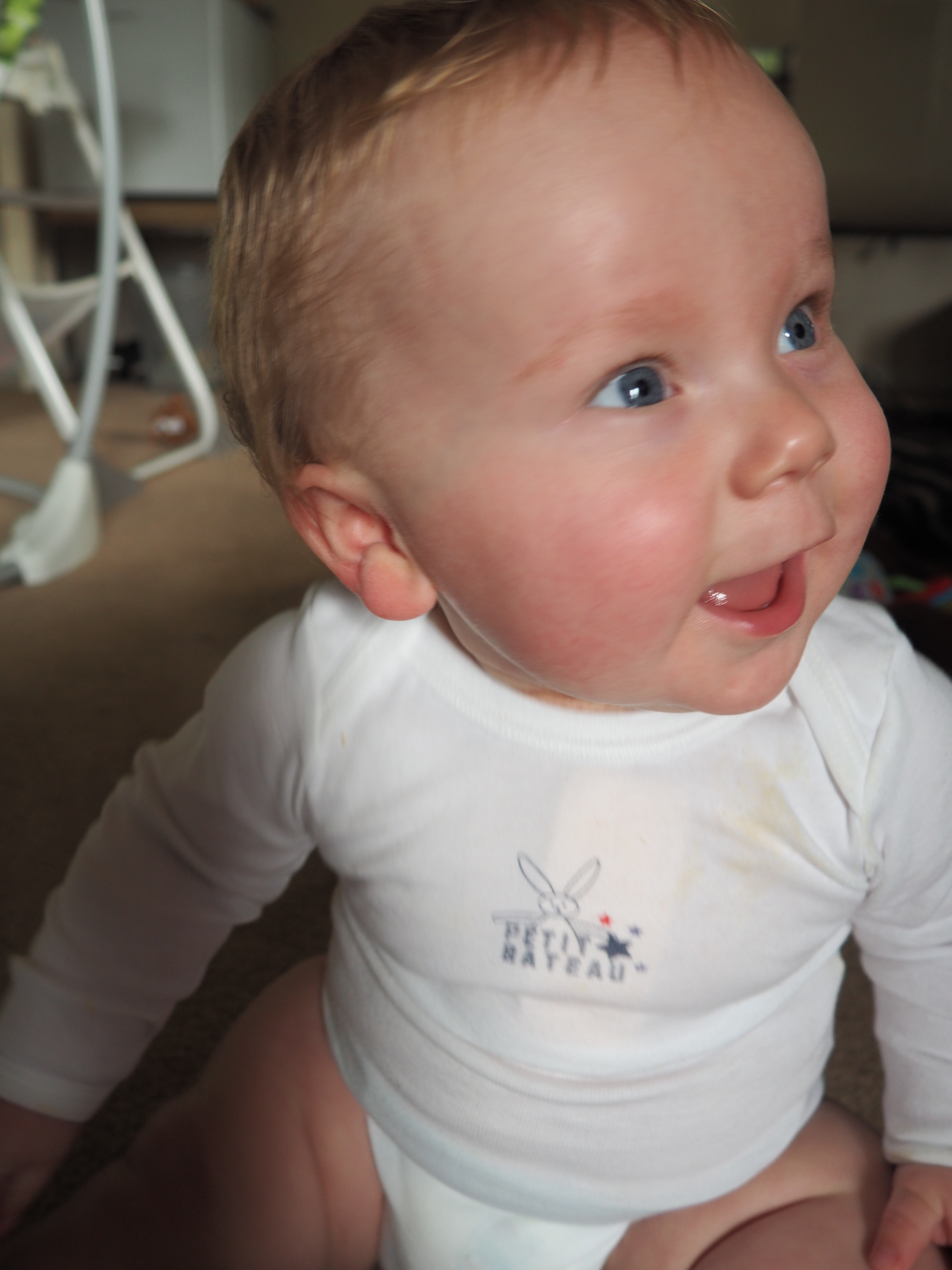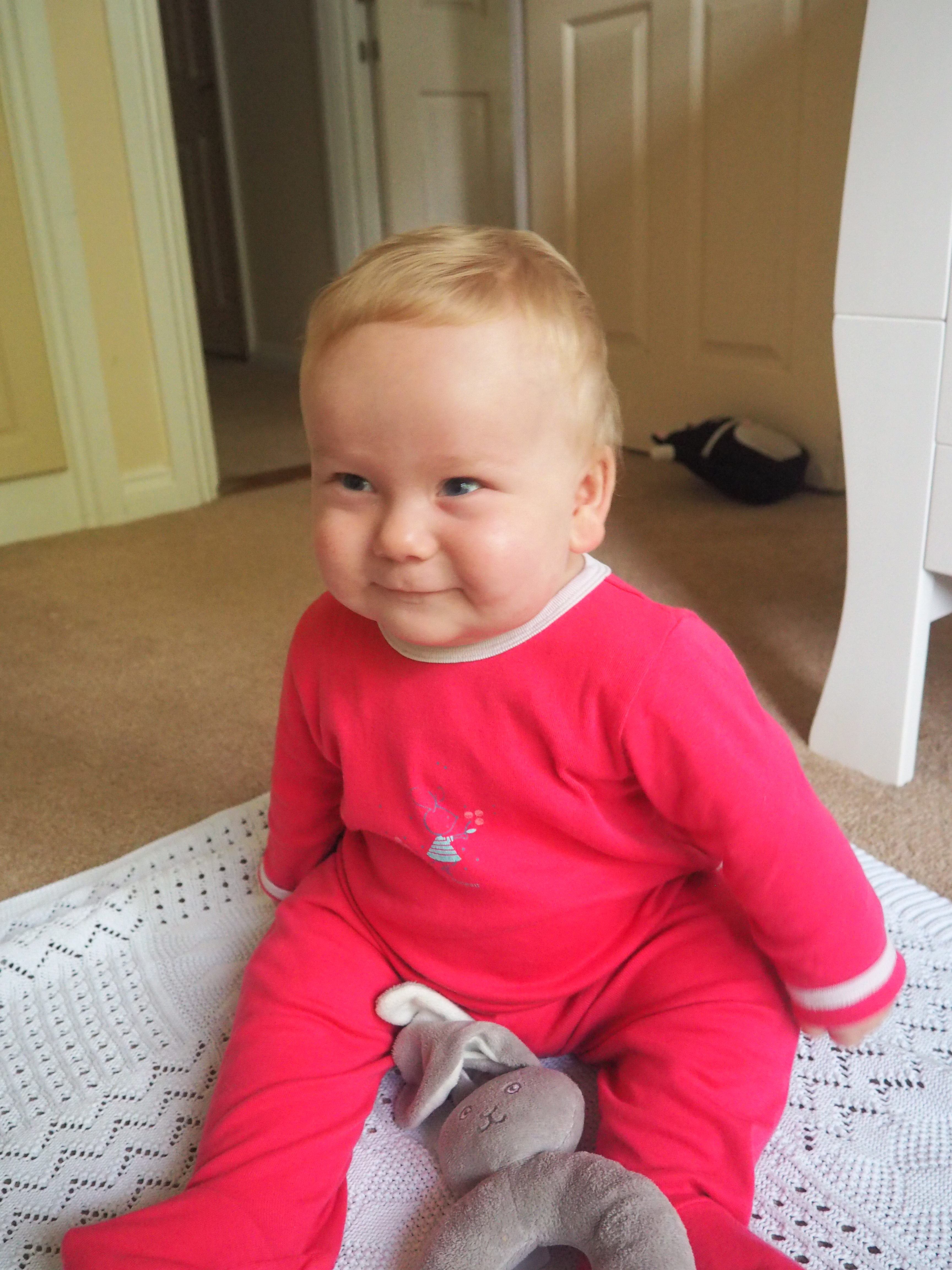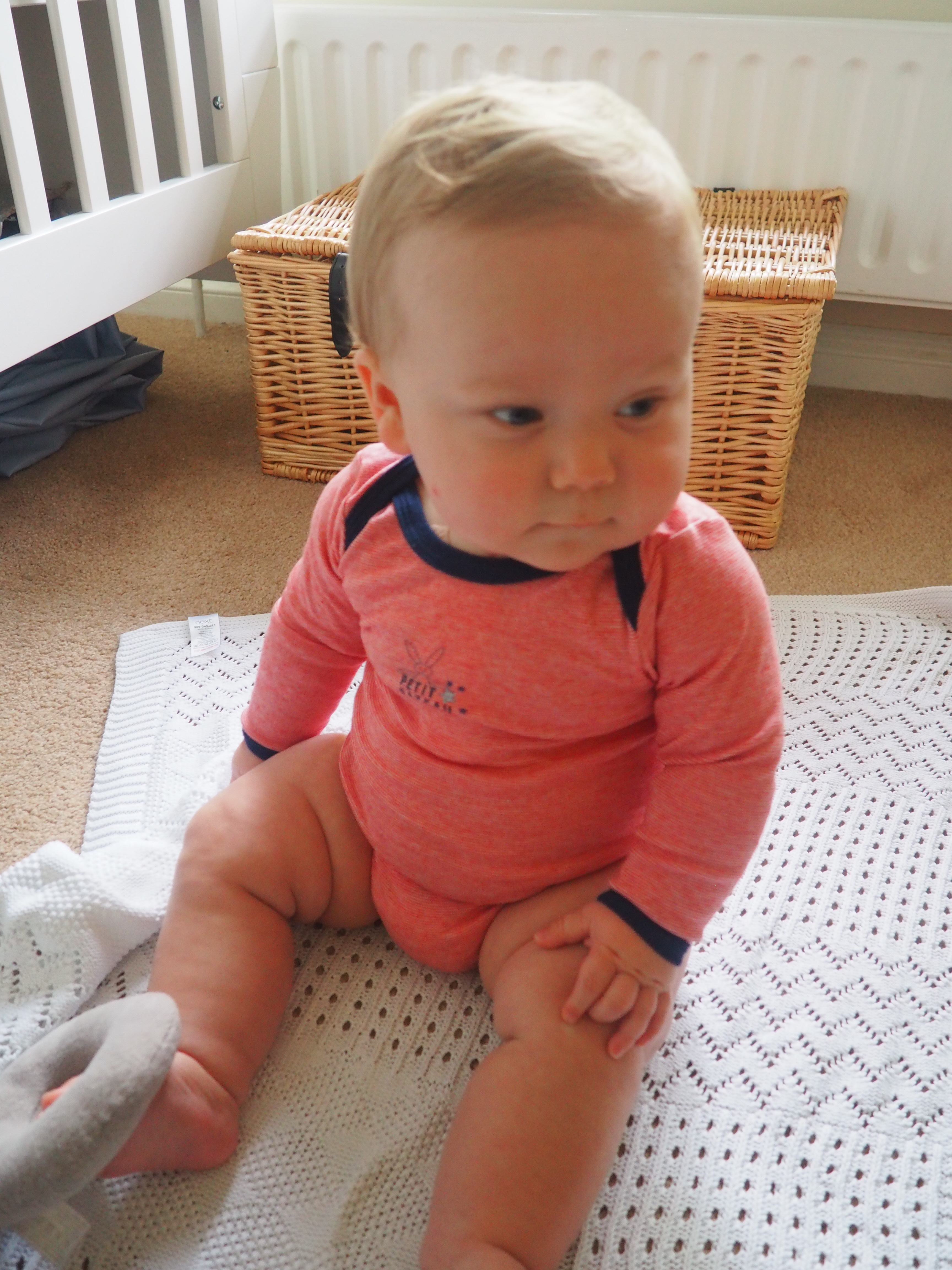The bright colour suits very well Baba’s blue eyes. And the motif on it is also gorgeous! In cotton, it is both comfortable pour bébé and easy-care pour Maman! Don’t neglect this kind of details. You want something easy to wash!