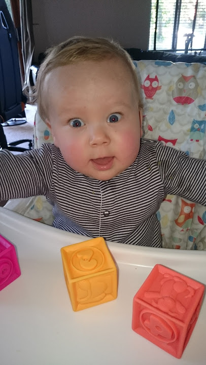These bright, squishy, squeaky blocks feel great and can be used in many different ways. At first, Baba was just happy to put them in his mouth and taste them, like pretty much anything.