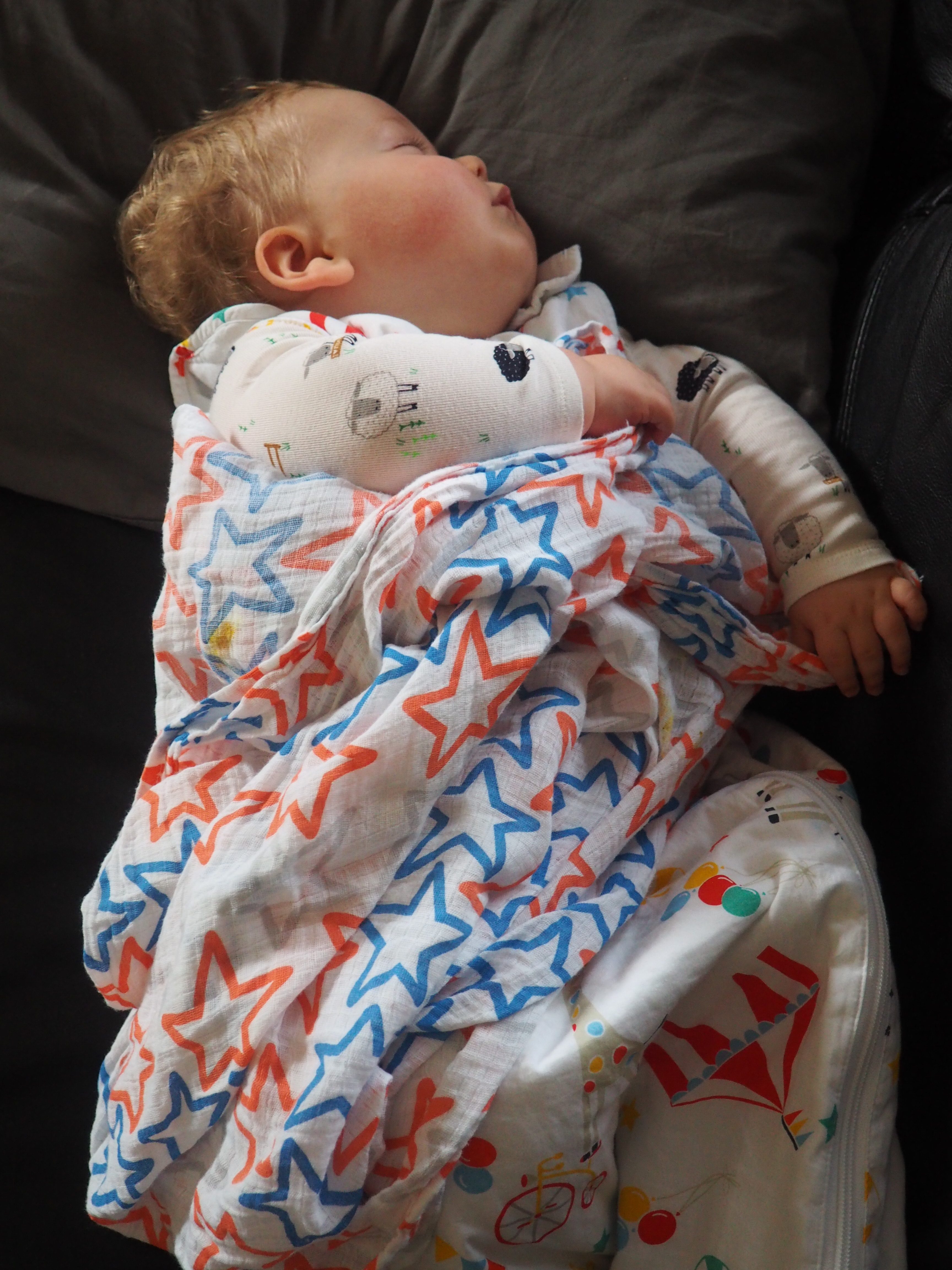 Baba’s favourite use? He loved having a swaddle as a comforter. All the times! In any situation! Actually, I mainly have pictures of him holding it tight! Le petit monstre is actively teething at the minute, so he was just happy to suck it and endlessly dribble over it!